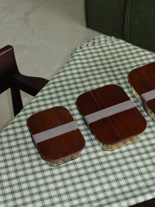 Sustainable containers made of stainless steel, glass, and wood. Available in various...